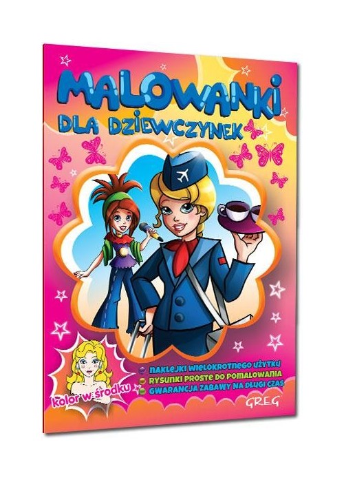 Malowanki dla dziewczynek to książeczka przygotowana dla wszystkich dziewczynek, które uwielbiają kolorować. Ilustracje zostały dobrane tak, by każda dziewczynka znalazła coś dla siebie. Są więc księżniczki, lalki, modelki, zwierzątka, motyle, ciekawe dla dzieci zawody.
