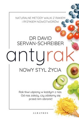 ŚWIATOWY FENOMEN WYDAWNICZY I MIĘDZYNARODOWY BESTSELLER! Jak żyć z rakiem koncepcja walki z nowotworami. Jak się odżywiać antyrakowe diety i produkty. Jak prowadzić antyrakowy styl życia. Jak walczyć z nowotworami, stymulując naturalne mechanizmy obronne organizmu. Rak tkwi uśpiony w każdym z nas. Od nas zależy, czy zdołamy się przed nim obronić. Antyrak w prosty i przystępny sposób przedstawia aktualny stan wiedzy o nowotworach i naturalnych środkach obronnych organizmu. Książka odpowiada na pytania kluczowe dla życia i zdrowia większości ludzi. Jaki tryb życia prowadzić, aby zmniejszyć ryzyko zachorowania na raka? Co robić, by zahamować rozwój choroby i zapobiec jej nawrotowi? Co jeść, jakie stosować diety? Jakich potraw i produktów bezwzględnie unikać? Dr Servan-Schreiber opisuje naturalne metody lecznicze wspomagające walkę z nowotworami, stanowiące uzupełnienie metod tradycyjnych (chirurgii, radioterapii i chemioterapii). Jego książka w żadnym jednak wypadku nie może zastąpić zaleceń lekarza. Dr Servan-Schreiber, neurochirurg i psychiatra, zajmował się terapią osób cierpiących na nowotwory i inne ciężkie schorzenia. W wieku trzydziestu jeden lat zdiagnozowano u niego nieoperacyjnego guza mózgu, który nie dawał rokowań ani na wyleczenie, ani na życie dłuższe niż kilka lat. Podjął walkę z chorobą, która ostatecznie pokonała go prawie dwadzieścia lat później, w 2011 roku. Choć był zwolennikiem niekonwencjonalnych metod leczenia, nie odrzucał osiągnięć naukowych i sposobów tradycyjnych. Jego ważnym wkładem w rozwój medycyny jest stworzenie nowej koncepcji walki z nowotworami opartej na stymulacji (za pomocą odpowiednio dobranych diet oraz stylu życia) naturalnych mechanizmów obronnych organizmu.