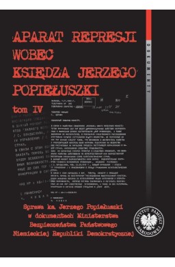 Czwarty tom publikacji Aparat represji wobec księdza Jerzego Popiełuszki zawiera dokumenty wytworzone w Ministerstwie Bezpieczeństwa Państwowego NRD (potocznie nazywanym Stasi) w reakcji na informacje o porwaniu i zamordowaniu kapelana "Solidarności". Najpoważniejsze miejsce w tym zbiorze zajmują materiały przygotowane przez Operativgruppe Warschau - działającą przy Ambasadzie NRD w Warszawie grupę operacyjną należącą do pionu kontrwywiadowczego Stasi, pełniącą wobec MSW PRL funkcję "placówki zaprzyjaźnionej służby". Sprawa uprowadzenia i zabójstwa duchownego, jako jeden z największych wstrząsów politycznych w PRL po 13 grudnia 1981 r., miała dla wschodnioniemieckiej policji politycznej niebagatelne znaczenie. Z jednej strony ukazywała bowiem kryzys wewnątrz struktur bezpieczeństwa PRL, a z drugiej reakcje Polaków na okrutną śmierć ks. Popiełuszki. Uzyskanie szczegółowych wyjaśnień na temat przyczyn, przebiegu i sprawców tej zbrodni nie było z pewnością celem dociekań funkcjonariuszy Stasi. W centrum ich zainteresowania znajdował się raczej wpływ tego morderstwa na sytuację w Polsce, a w szczególności na sytuację wewnątrz MSW i PZPR.
