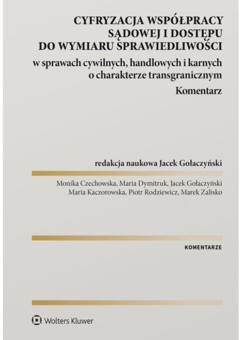 Komentarz szczegółowo omawia rozporządzenie Parlamentu Europejskiego i Rady (UE) 2023/2844 z 13.12.2023 r. w sprawie cyfryzacji współpracy sądowej i dostępu do wymiaru sprawiedliwości w sprawach cywilnych i handlowych o charakterze transgranicznym oraz współpracy wymiarów sprawiedliwości i dostępu do wymiaru sprawiedliwości w sprawach karnych o charakterze transgranicznym, które jest kluczowym dokumentem dotyczącym nowoczesnego i efektywnego funkcjonowania wymiaru sprawiedliwości w Unii Europejskiej. Stanowi ono krok w kierunku pełnej cyfryzacji i modernizacji europejskiego systemu wymiaru sprawiedliwości, przyczyniając się do jego większej przejrzystości, dostępności i skuteczności. Komentowane przepisy ustanawiają jednolite ramy prawne dla wykorzystania elektronicznych środków komunikacji w celu umożliwienia efektywnej współpracy między organami sądowymi w sprawach cywilnych, handlowych i karnych. Dają również możliwość korzystania z elektronicznych środków komunikacji przez osoby fizyczne i prawne w postępowaniach sądowych w sprawach cywilnych i handlowych. Od 1.05.2025 r. rozporządzenie będzie obowiązywać we wszystkich państwach członkowskich Unii Europejskiej, wprowadzając normy dotyczące wykorzystywania wideokonferencji i innych technologii zdalnej komunikacji w celach innych niż przeprowadzanie dowodów. Reguluje ono również stosowanie podpisów elektronicznych, pieczęci elektronicznych, elektronicznego uiszczania opłat oraz skutki prawne dokumentów elektronicznych. W komentarzu uwzględniono ponadto bogaty wybór orzecznictwa Trybunału Sprawiedliwości Unii Europejskiej i sądów krajowych. Publikacja jest przeznaczona przede wszystkim dla prawników praktyków - sędziów, adwokatów, radców prawnych, prokuratorów, a także pracowników naukowych.