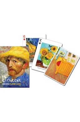 Najwyższej jakości karty do gry renomowanej firmy Ferd. Piatnik & Sohne poświęcone obrazom Vincenta Van Gogha. Na wszystkich awersach wizerunki jego wyjątkowych dzieł. Talia składa się z 54 plastikowanych kart o wymiarach 63 x 88 mm i gramaturze 310. Idealna zarówno do brydża, pokera, remika jak i innych gier.