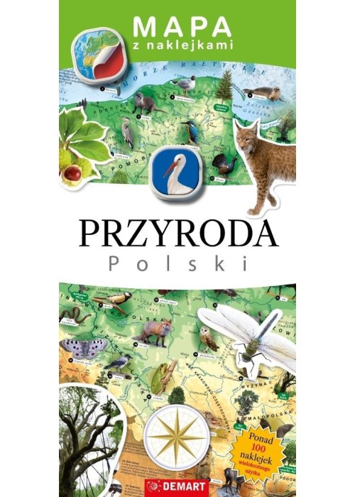 Składana mapa ogólnogeograficzna Polski w formacie B1 z dołączonymi naklejkami, do samodzielnego uzupełnienia treści mapy. Mapa zawiera opisy państw i większych miast, krain geograficznych, wysp i wód. Dziecko przez zabawę poznaje przyrodę Polski: uczy się rozpoznawać zwierzęta, charakterystyczne drzewa, zdobywa wiedzę o parkach narodowych. Na stronie mapowej umieszczono krótkie informacje o występujących w Polsce zwierzętach, a na odwrocie mapy znajdują się krótkie opisy polskich parków narodowych oraz informacje o najpopularniejszych gatunkach drzew występujących w naszym kraju.