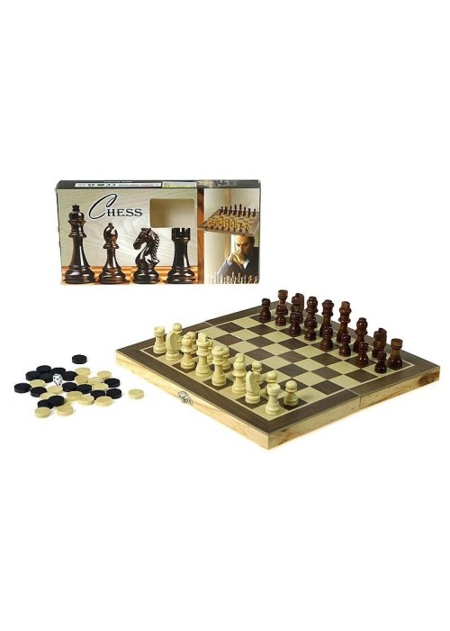 zestaw gier, szachy i warcaby, drewniane; 29x15x4cm, BOX