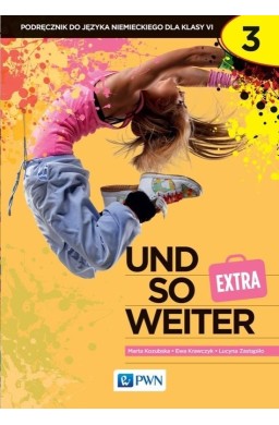 Podręcznik und so weiter EXTRA 3 jest przeznaczony dla uczniów klasy 6 szkoły podstawowej, którzy kontynuują naukę języka niemieckiego po klasach 1-3 jako pierwszego języka obcego (podstawa programowa II.1) lub rozpoczynają ją, jako drugiego języka obcego. Prezentowany w podręczniku materiał leksykalno-gramatyczny i proponowane zadania odpowiadają najnowszym tendencjom dydaktyki języków obcych. Najważniejsze cechy podręcznika: Klarowny układ podręcznika: stała, modułowa budowa rozdziałów, jasno określone cele. Nowoczesna szata graficzna angażująca młodych odbiorców. Różnorodne zadania wspierające efektywną komunikację. Ciekawe treści realioznawcze i kulturowe - rozwój kompetencji interkulturowej. und so weiter EXTRA 3 zapewnia harmonijny rozwój wszystkich sprawności językowych. Każdy rozdział zawiera zadania rozwijające sprawność czytania i rozumienia ze słuchu oraz mówienia i pisania. System piktogramów prowadzi nauczyciela i ucznia, wyraźnie określając rozwijane sprawności językowe. Podręcznik und so weiter EXTRA 3 składa się z 6 rozdziałów o modułowej budowie oraz 4 sekcji dodatkowych. W każdym rozdziale stałymi elementami są: piosenka zagadka gramatyczna tekst do słuchania tekst do czytania ćwiczenie fonetyczne zadanie rozwijające sprawność tworzenia krótkich tekstów pisemnych praca projektowa - tworzenie książeczki leporello informacje gramatyczne z zestawem dodatkowych zadań. Podręcznik zawiera ponadto: sekcję Interessantes über DACH-Länder, prezentującą informacje o krajach niemieckiego obszaru językowego Theaterstück - tekst sztuki teatralnej propozycje projektów dla całej klasy zestawy zadań sprawdzających Die kluge Eule prüft opisy gier i zabaw językowych zaprezentowanych w podręczniku słowniczek alfabetyczny wraz z listą zwrotów i wyrażeń. Cyfrowy podręcznik - elektroniczna wersja podręcznika. W każdym zakupionym egzemplarzu, na wewnętrznej stronie okładki, znajdują się spersonalizowane kody do cyfrowego odzwierciedlenia podręcznika, dzięki którym uczniowie mogą z niego korzystać. Cyfrowy podręcznik und so weiter EXTRA 3 znajdziesz na platformie e-Akademia PWN. Zestawy słówek, zwrotów i wyrażeń prezentowanych w podręczniku und so weiter EXTRA 3 znajdziesz na platformie Quizlet.