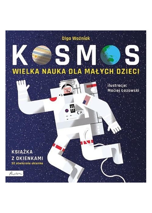 Proste opowieści o sprawach, którymi żyjemy na co dzień. Świat jest wielki, piękny i ciągle się zmienia. Mali geniusze o tym wiedzą. Dzieci zadają pytania, na które warto odpowiedzieć w sposób dostosowany do ich możliwości i jednocześnie zaspokajający naturalną ciekawość. Żadne dziecko nie jest za małe, żeby opowiadać mu o tym, co dzieje się na niebie o wyjaśnić zagadnienia związane z kosmosem. Która planeta w Układzie Słonecznym jest największa? Ile jest gwiazd na niebie? Dlaczego Księżyc zmienia kształt? Jak duże jest Słońce? Na te i inne dziecięce pytania odpowiada ta książka. Trwałe, kartonowe strony i 32 otwierane okienka - mnóstwo zabawy dla małych odkrywców!