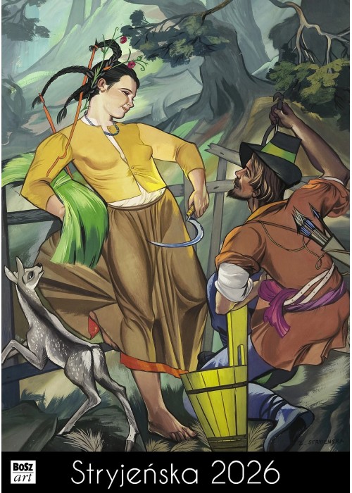 Kalendarz na 2026 rok w formacie A3 (297x420 mm) z ilustracjami Zofii Stryjeńskiej, wydrukowany na papierze kredowym o gramaturze 170 g/m2.Indeks dzieł Zofii Stryjeńskiej znajdujących się w kalendarzu: Korowód z jeleniem, 1925 Zaloty, po 1945...