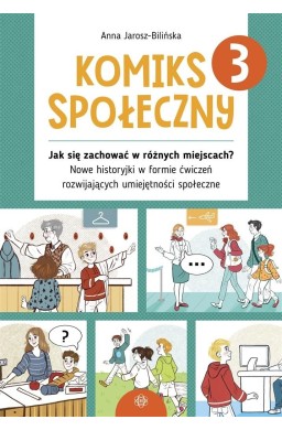 Na końcu każdej historyjki znajdują się ciekawe ćwiczenia mające na celu rozszerzenie omawianego tematu oraz sprowokowanie do dyskusji. Komiks społeczny 3 to książka skierowana do dzieci i młodzieży w wieku 713 lat, ich terapeutów, nauczycieli oraz rodziców. Forma publikacji sprawdzi się podczas indywidualnej pracy z dzieckiem, a także w trakcie zajęć grupowych czy lekcji profilaktyczno-wychowawczych.