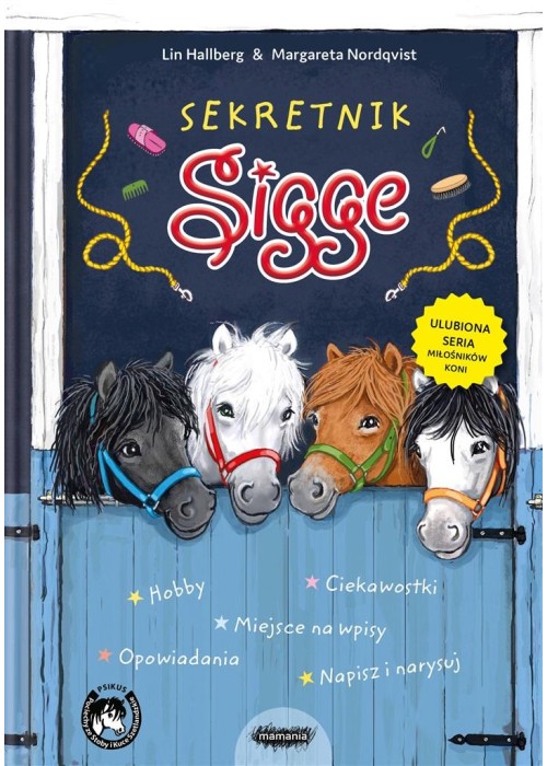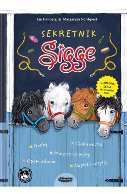 Wspaniała książka, do której nie tylko możecie wpisywać informacje o sobie, swoich ulubionych koniach, ale też rozwiązywać zagadki, bawić się i uczyć! Mnóstwo faktów o koniach i jeździe konnej, a do tego historia narodzin Sigusia oraz najzabawniejsze i najstraszniejsze wspomnienia ze stajni PSIKUS. Seria o przygodach Sigge stała się bestsellerem nie tylko w Szwecji. Jej autorka Lin Hallberg mieszka w małym szwedzkim gospodarstwie, gdzie hoduje kuce szetlandzkie. Zanim zaczęła pisać książki, pracowała jako instruktorka jazdy konnej.