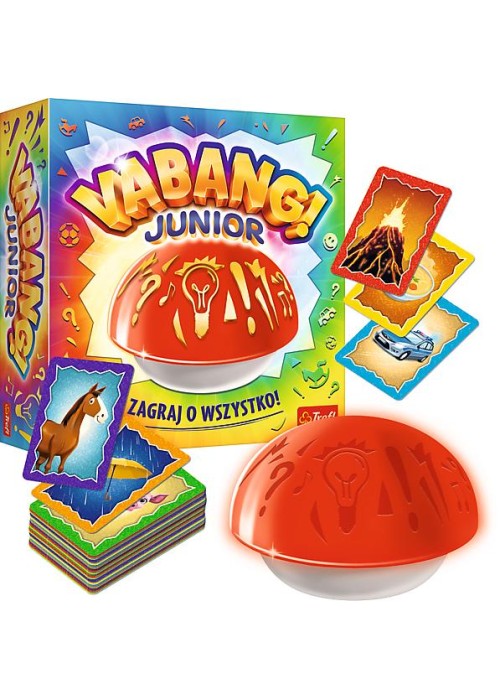 Vabang Junior to gra towarzyska, w której liczy się refleks, bo wszyscy grają jednocześnie. Poczuj się jak w teleturnieju! Jako pierwszy wymyśl skojarzenie związane z obrazkiem na karcie i naciśnij przycisk! Przycisk zacznie świecić i...